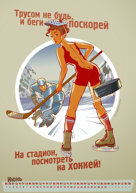 За да постигне желания ефект, художника е съчетал реални стари съветски плакати от 40-те и 50-те години на миналия век с популярното по същото време течение в САЩ "Пин-ъп". Името на модата в Америка идвала от това, че мъжете масово късали страници с подобни рисунки на момичета и ги закачали по стените и шкафчетата си.