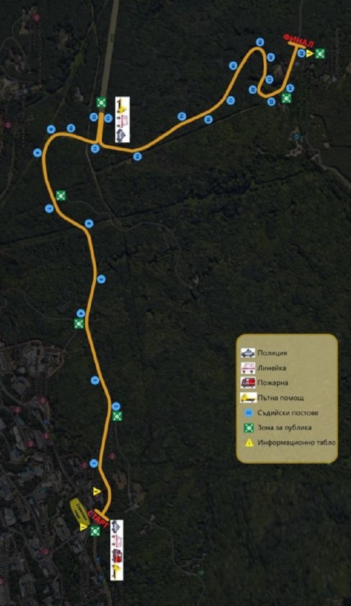За провеждане на състезанието се предвижда затваряне за движение на път VAR 1083 и път I-9 в участъка от км 88+803 до км 93+180 (пресечната точка на път I-9 с връзката на с.о.”Ален мак”) за времето на провеждане на състезанието-събота 9.09.2023г. от 11:00 до 18:00 часа и неделя 10.09.2023г. от 08:00 до 17:00 часа.