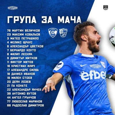 Старши-треньорът Николай Киров определи групата за днешния мач срещу Берое Стара Загора. Срещата ще се проведе от 16:45 ч. на стадион „Спартак“.