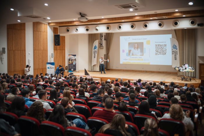 Симон Радански, студент по бизнес информатика в УНСС, представи проектите Portel и SmartVarna, решения, свързващи технологиите с градската среда и обществото. „Ако днес не направите промяна, утре ще сте същите. Търсете ментори, споделяйте идеи и действайте!“ Симон показа, че младите хора вече създават иновации, които подобряват живота ни.