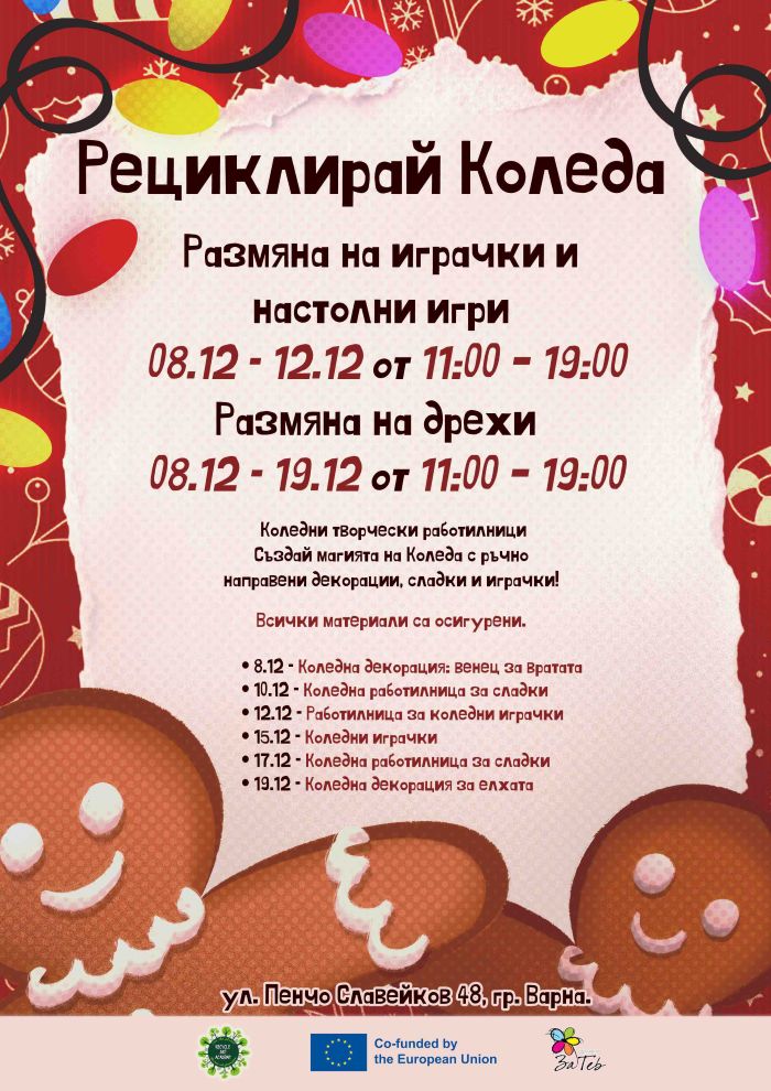 Академия за рециклиращо изкуство и Сдружение „За Теб“ организират две инициативи във Варна, насочени към насърчаване на устойчиви навици, споделяне и отговорно потребление. Инициативите дават възможност на вещите да получат втори живот и насърчават варненци да намалят отпадъците по време на празничния сезон.