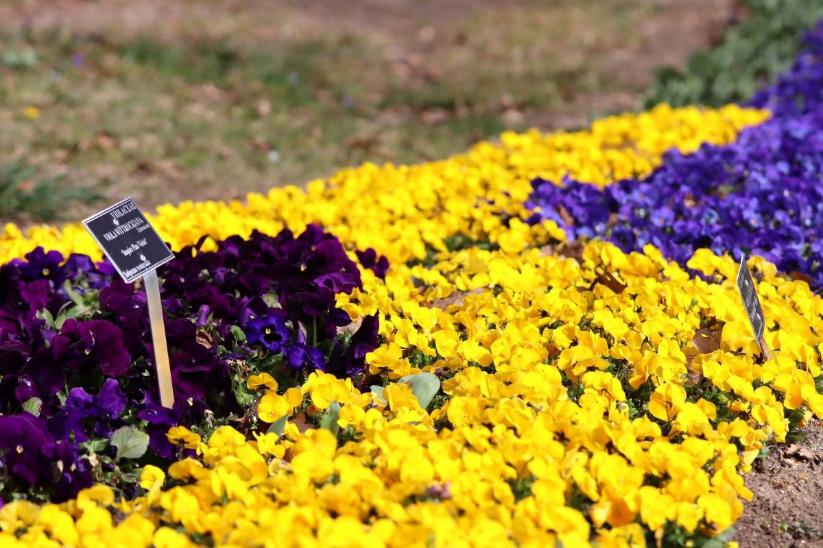 Цветните фигури в парка вече радват посетителите с изящните си теменужки.