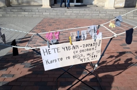 Граждани простряха чорапи пред Съдебната палата в подкрепа на активиста