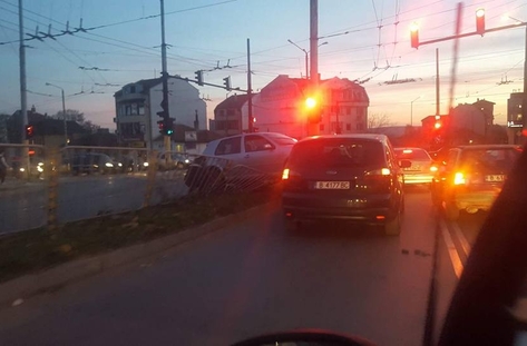 Лек автомобил "Фолксваген" помете разделителна ограда и друга кола на кръстовището до дом "Младост", си...