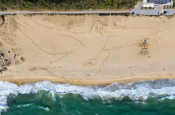Изображението е вписано в плажната ивица на Камчия, която е най-дългата в България.