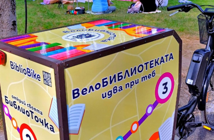 Освен заниманията за деца мобилният велосипед предлага и библиотечен отдел.
